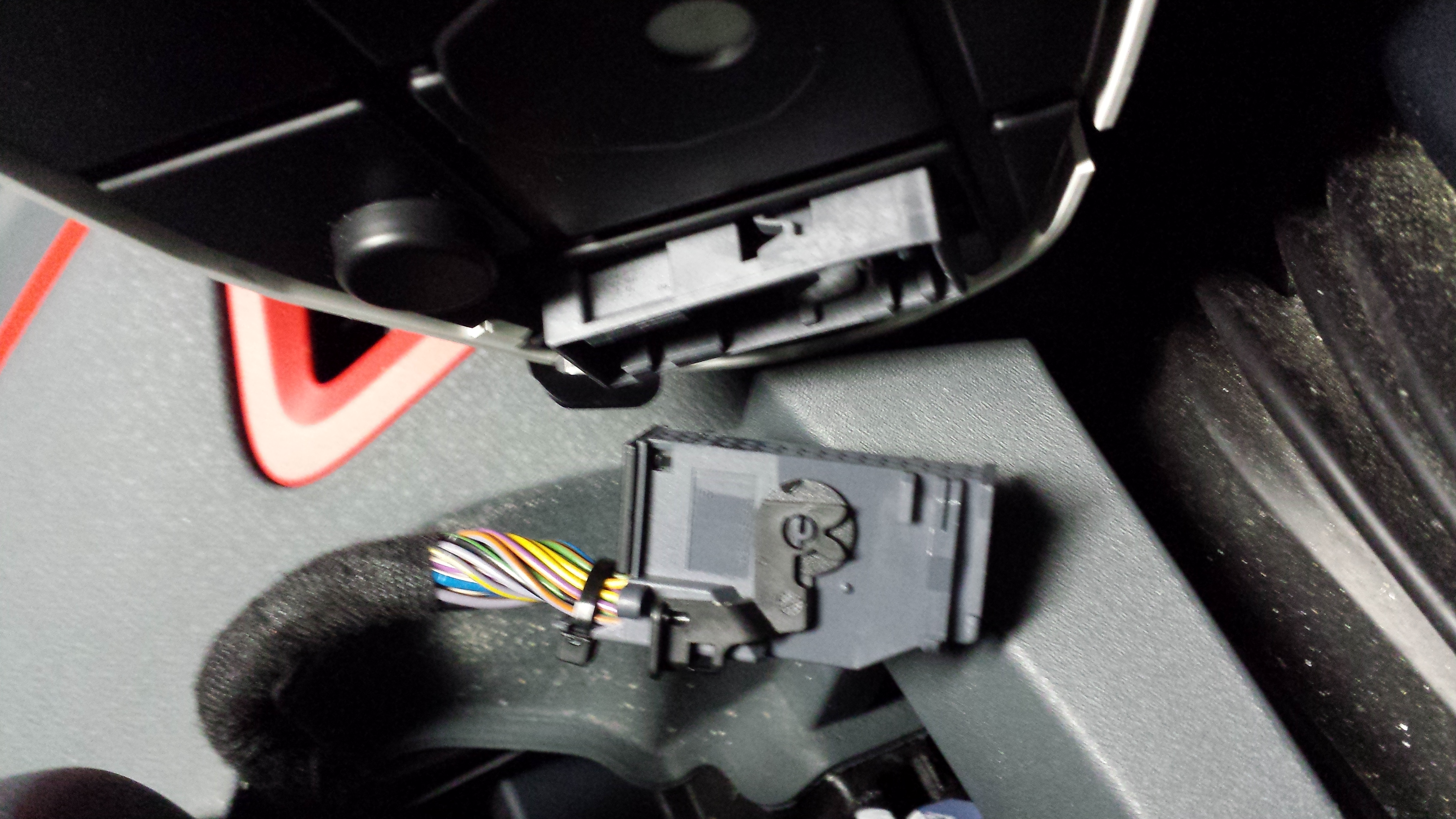 Das Anzeigeinstrument hat einen Stecker, den man lösen kann indem man den dort befindlichen schwarzen Rahmen nach oben zieht und so hebelartig vom Instrument löst.